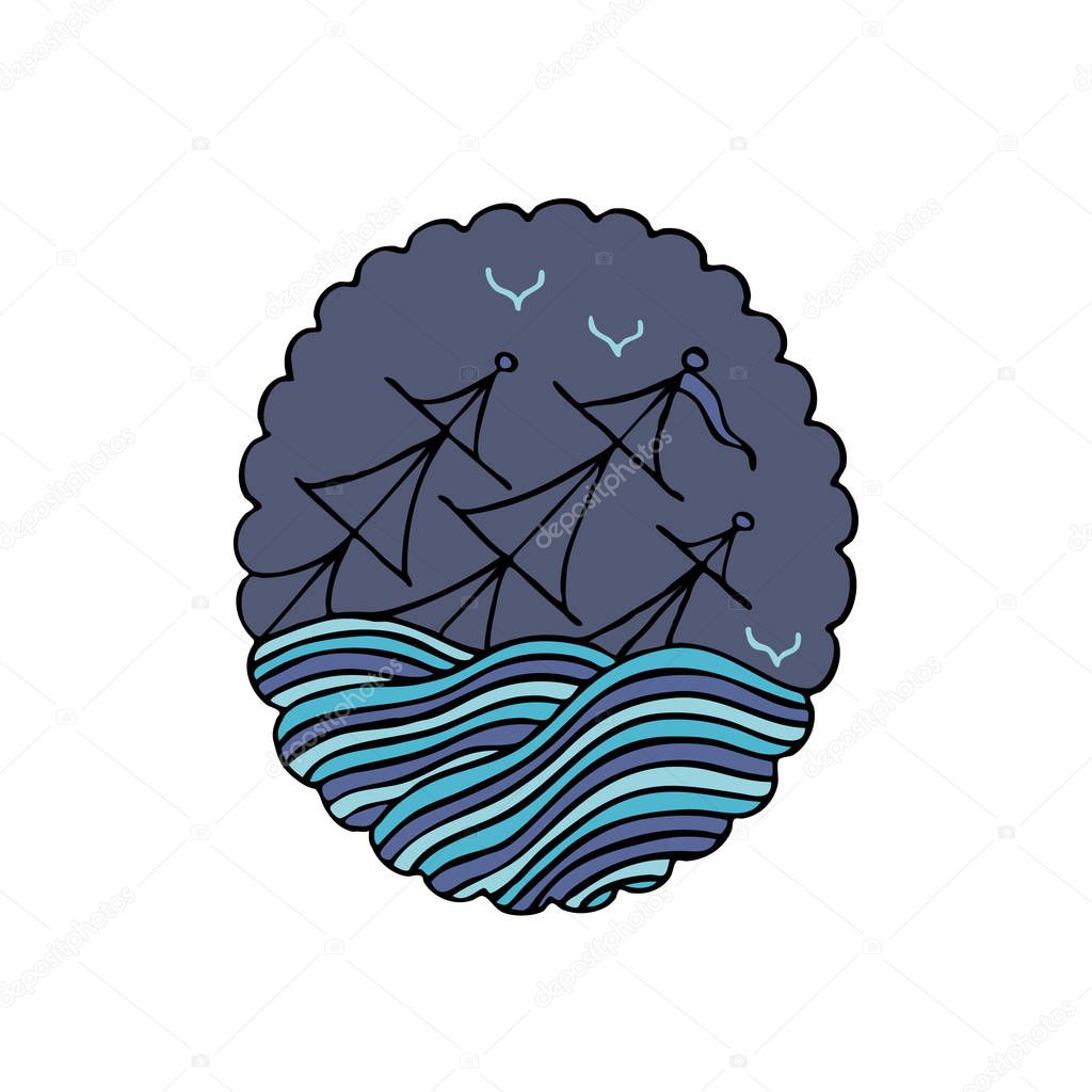 Authors Drawing Style Tattoo Loneliness Shipwreck Stock Vector Royalty Free 479665423
