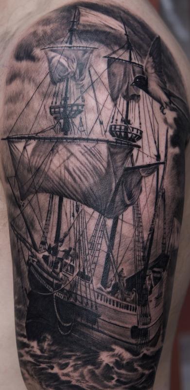 Muecke Tattoo Art Ship Clipper Ship Ocean Art Muecke Boat Sailboat Captain Ink Black And Grey Tattoo Com