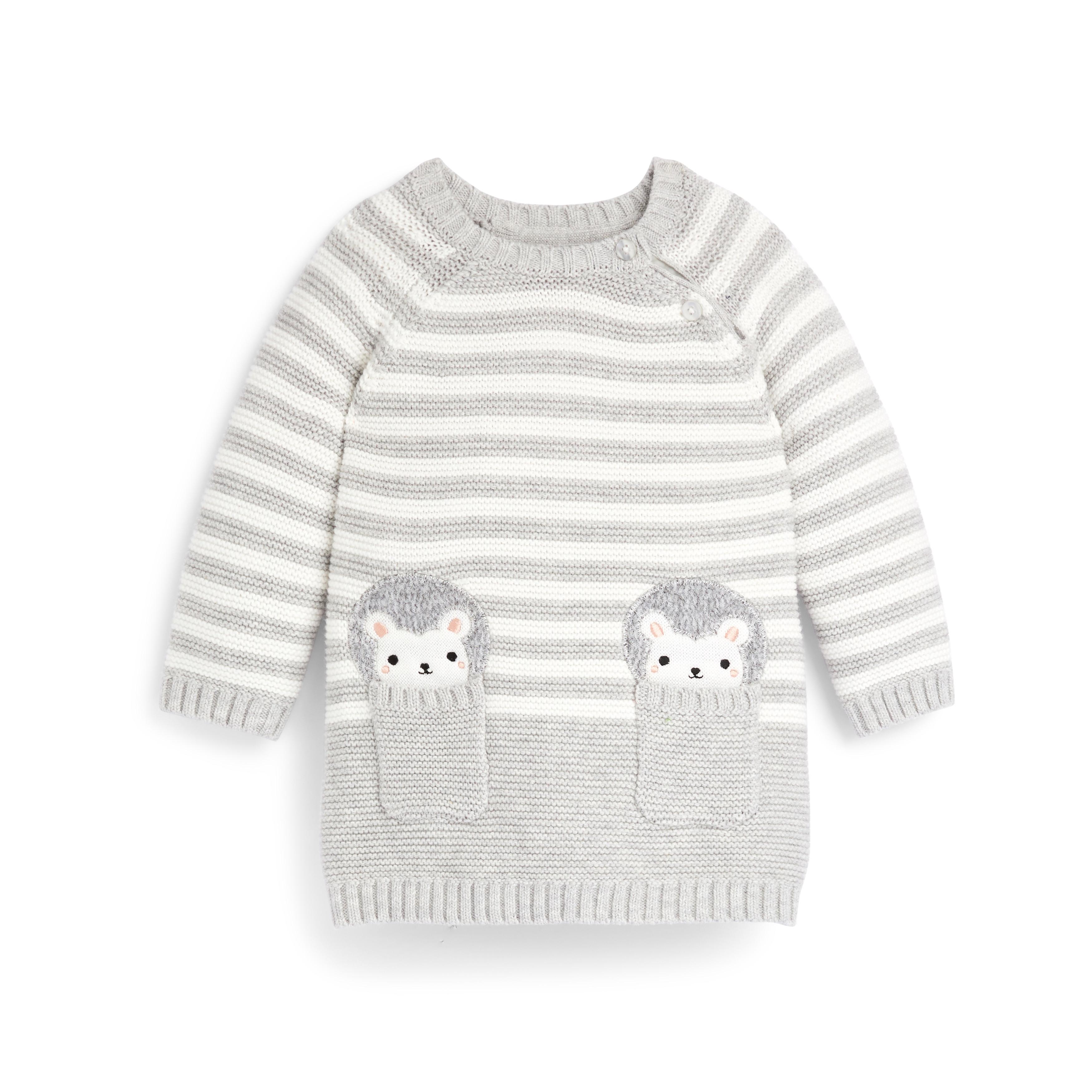 Jersey Gris A Rayas Con Bolsillos En Forma De Erizo Para Bebé Niña